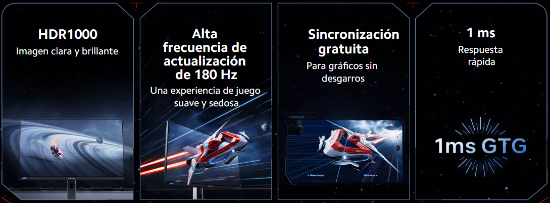 Sum茅rgete en mundos virtuales con el Xiaomi Mini LED Gaming Monitor G Pro 27i. Disfruta de im谩genes asombrosas en su pantalla Mini LED de 27 pulgadas con resoluci贸n 2K y una rapid铆sima frecuencia de actualizaci贸n de 180Hz y 1ms de respuesta. Colores vibrantes y negros profundos con HDR1000 y tecnolog铆a FreeSync para una experiencia de juego fluida y envolvente.